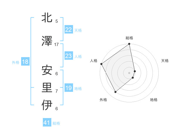 北澤 安里伊さんを姓名の画数から五運を鑑定