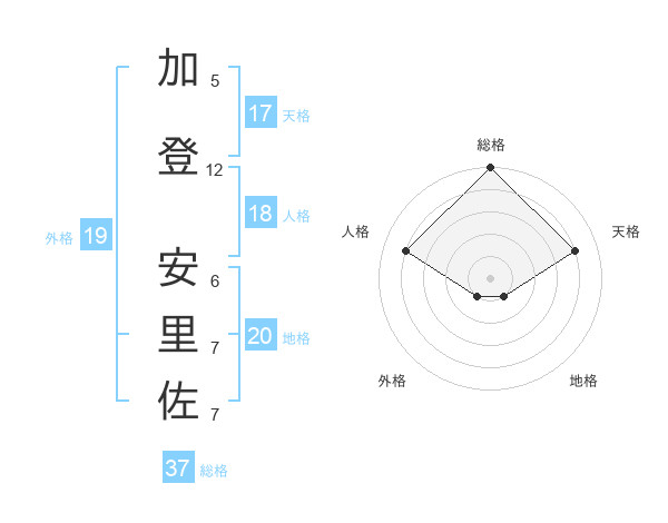 加登 安里佐さんを姓名の画数から五運を鑑定