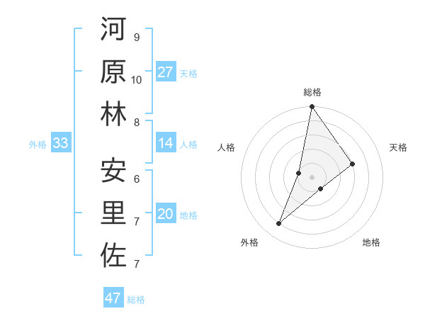 河原林 安里佐さんを姓名の画数から五運を鑑定