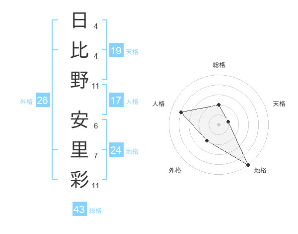 日比野 安里彩さんの総格は43画の2点!