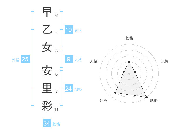 早乙女 安里彩さんを姓名の画数から五運を鑑定