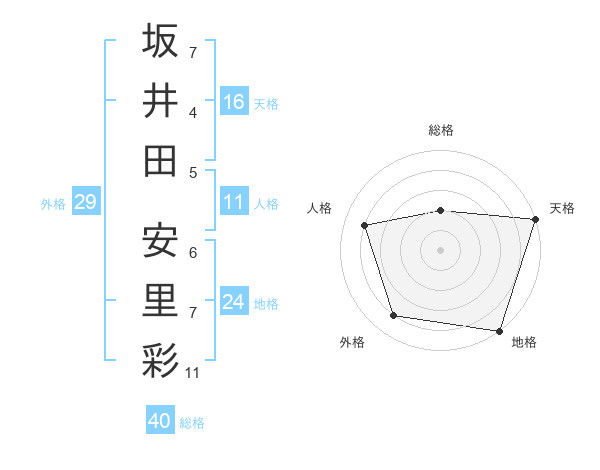 坂井田 安里彩さんを姓名の画数から五運を鑑定