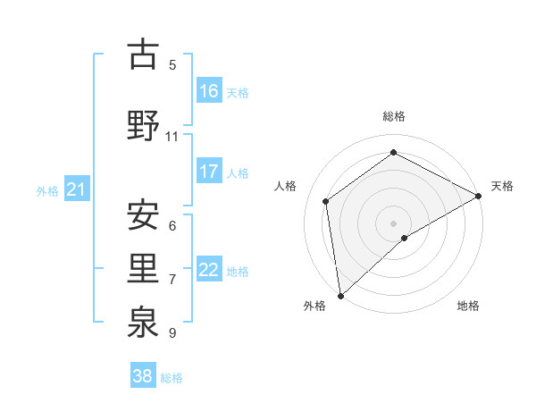古野 安里泉さんの天格は16画の5点!