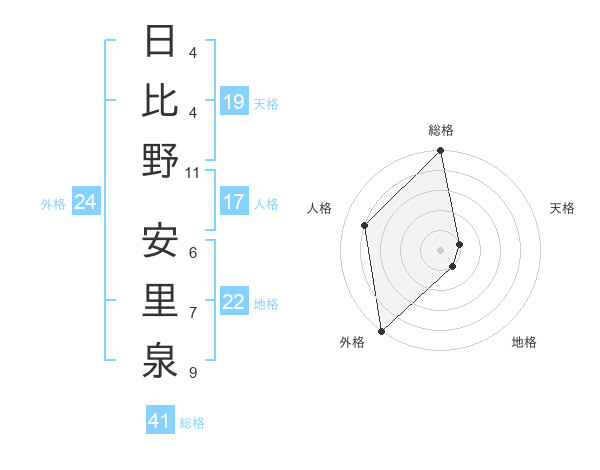 日比野 安里泉さんを姓名の画数から五運を鑑定
