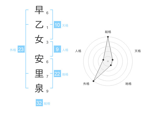 早乙女 安里泉さんを姓名の画数から五運を鑑定