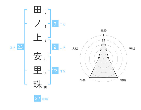 田ノ上 安里珠さんの総格は32画の5点!