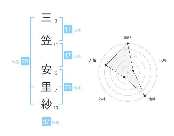 三笠 安里紗さんを姓名の画数から五運を鑑定