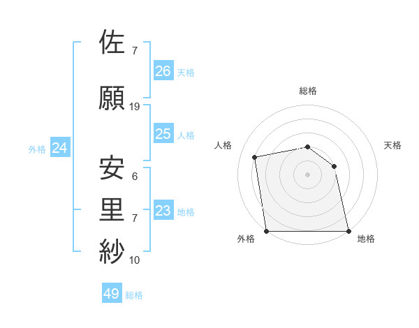 佐願 安里紗さんを姓名の画数から五運を鑑定