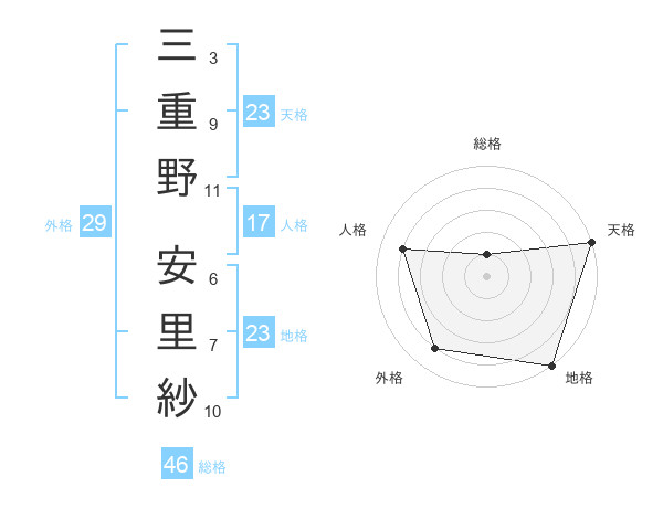 三重野 安里紗さんを姓名の画数から五運を鑑定