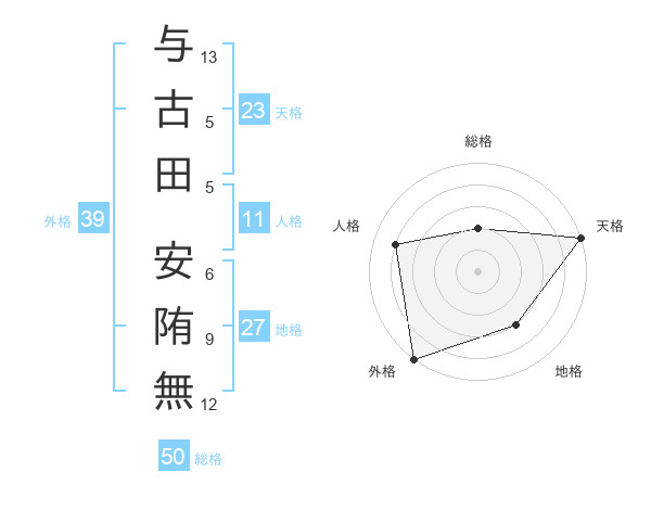 与古田 安陏無さんを姓名の画数から五運を鑑定