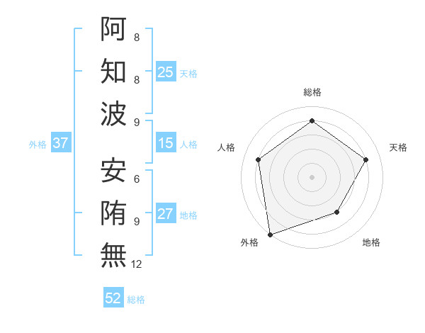 阿知波 安陏無さんを姓名の画数から五運を鑑定