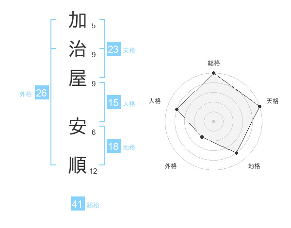 加治屋 安順さんを姓名の画数から五運を鑑定