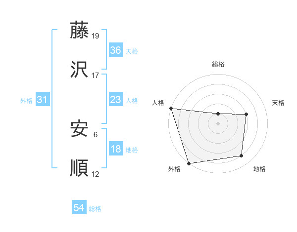 藤沢 安順さんを姓名の画数から五運を鑑定