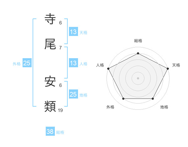 寺尾 安類さんの天格は13画の5点!