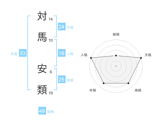 対馬 安類さんの天格は24画の5点!