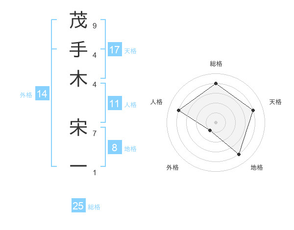 茂手木 宋一さんを姓名の画数から五運を鑑定