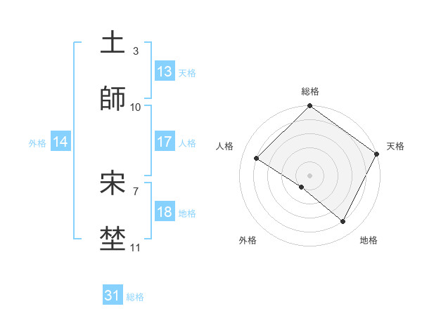 土師 宋埜さんの総格は31画の5点!