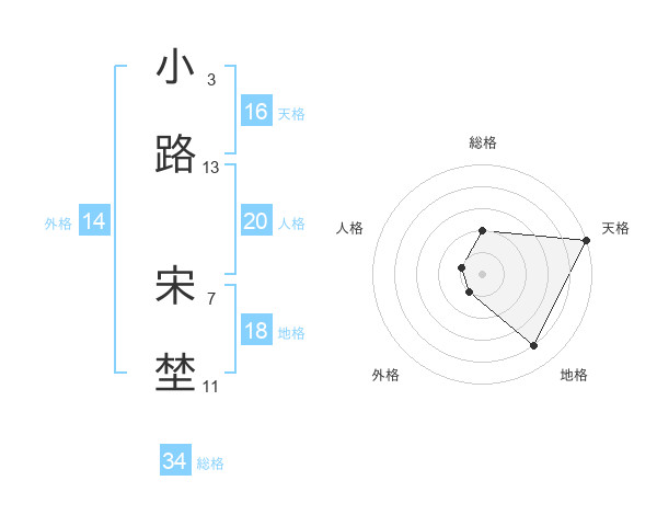 小路 宋埜さんの総格は34画の2点!