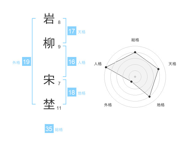 岩柳 宋埜さんの総格は35画の4点!