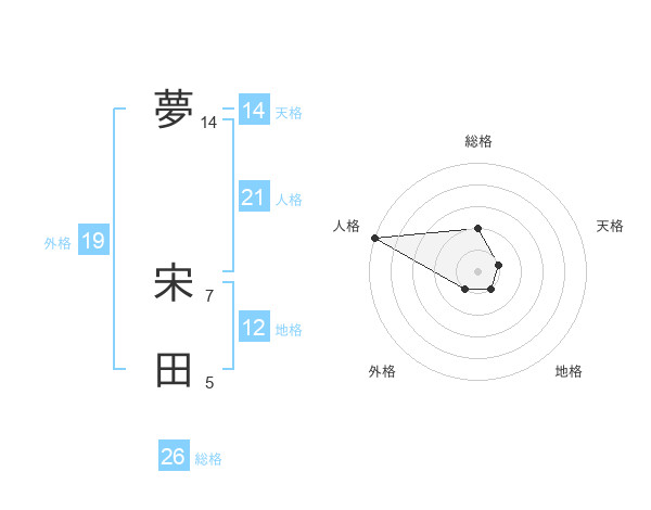 夢 宋田さんの人格は21画の5点!