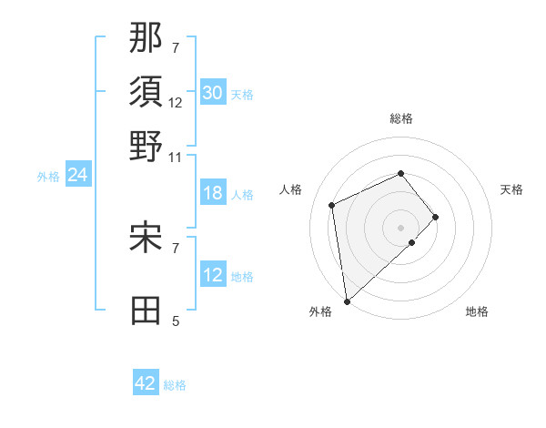 那須野 宋田さんを姓名の画数から五運を鑑定