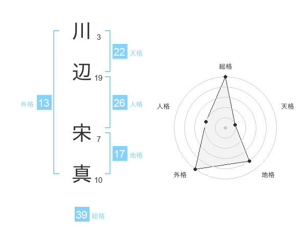 川辺 宋真さんを姓名の画数から五運を鑑定