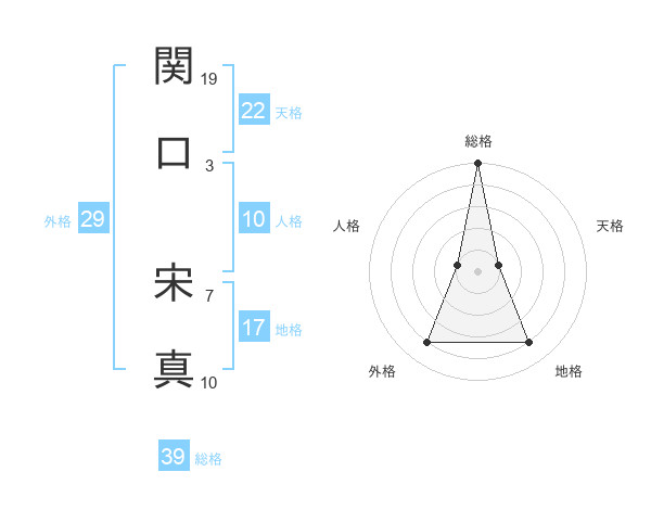 関口 宋真さんの総格は39画の5点!