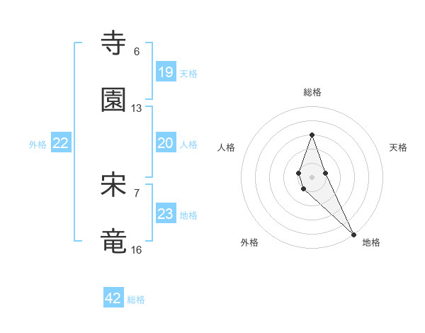 寺園 宋竜さんを姓名の画数から五運を鑑定