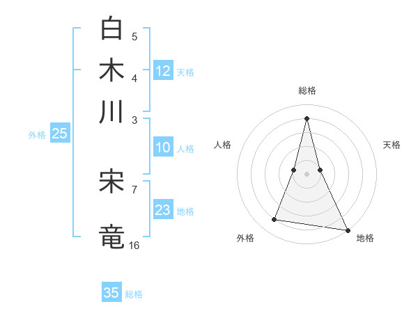 白木川 宋竜さんの総格は35画の4点!