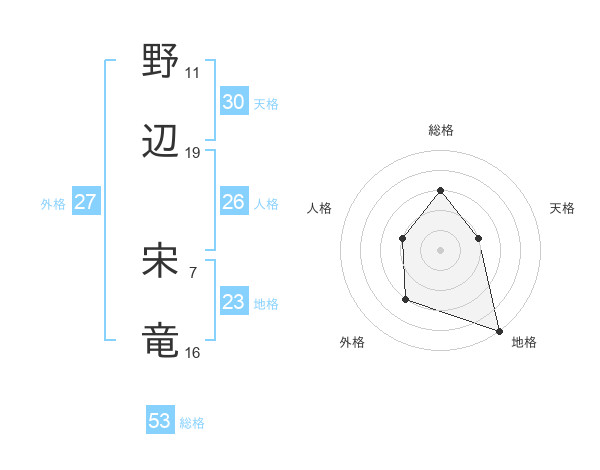 野辺 宋竜さんの総格は53画の3点!