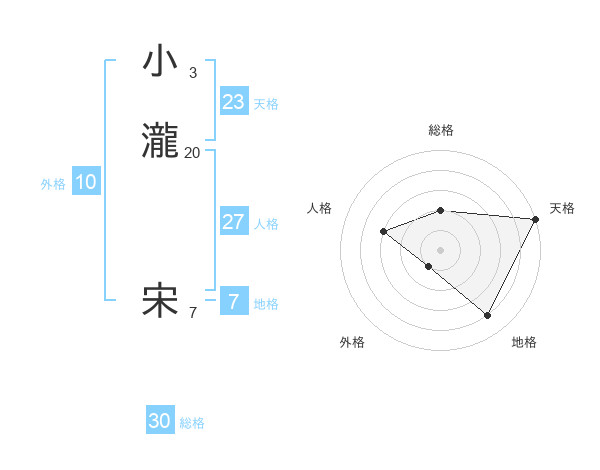 小瀧 宋さんの天格は23画の5点!