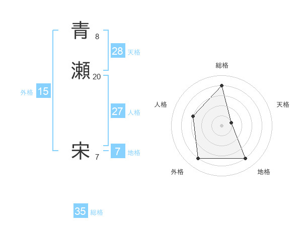 青瀬 宋さんの総格は35画の4点!