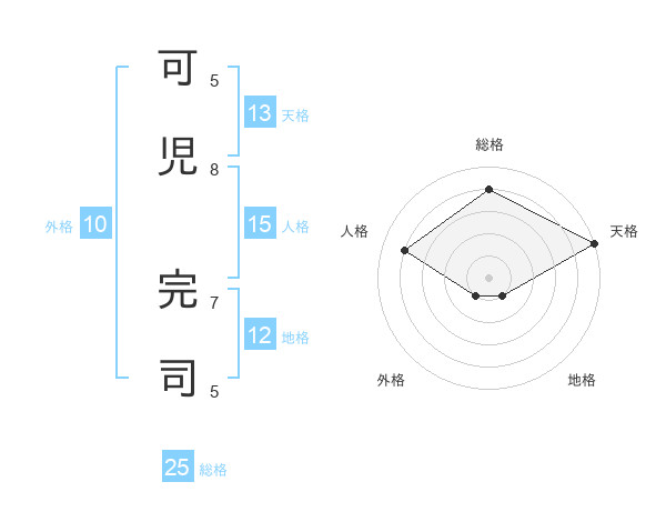可児 完司さんの天格は13画の5点!