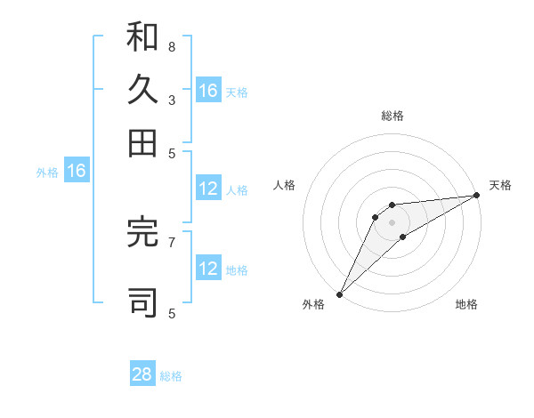 和久田 完司さんの外格は16画の5点!