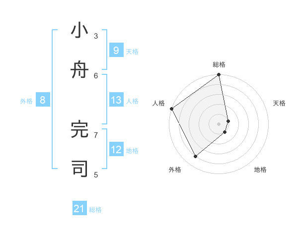 小舟 完司さんの総格は21画の5点!