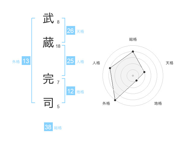 武蔵 完司さんを姓名の画数から五運を鑑定