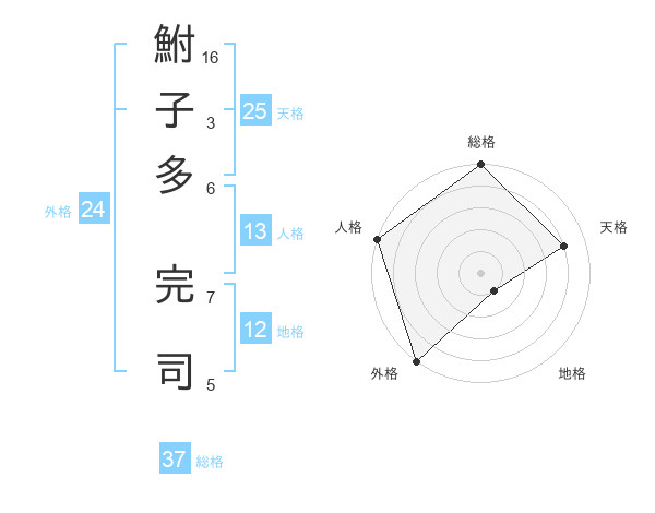 鮒子多 完司さんの総格は37画の5点!