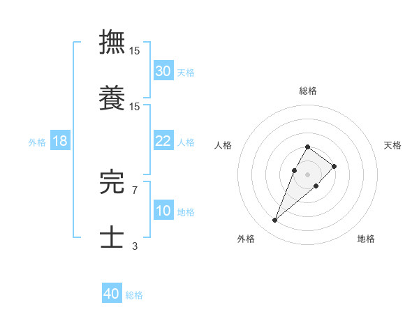 撫養 完士さんの総格は40画の2点!