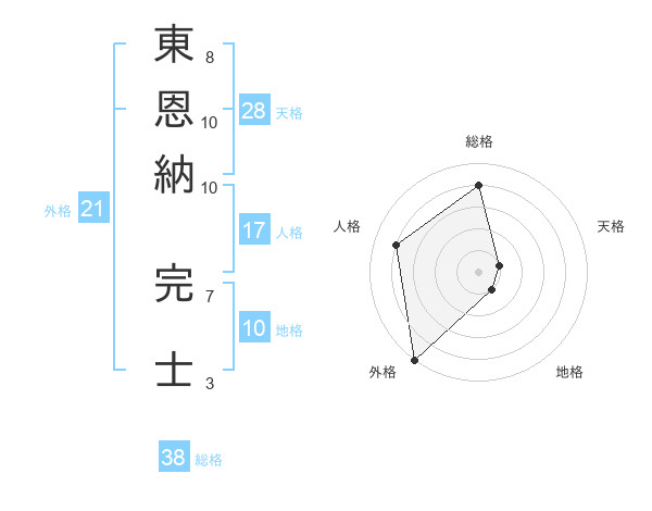 東恩納 完士さんの総格は38画の4点!