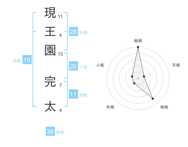 現王園 完太さんの天格は28画の1点!