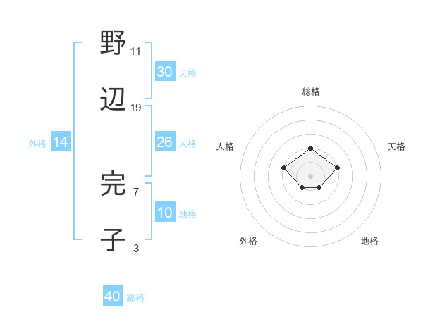 野辺 完子さんの総格は40画の2点!