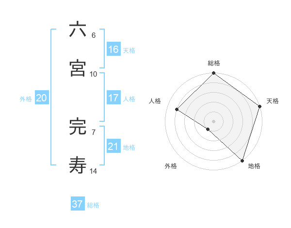 六宮 完寿さんの総格は37画の5点!