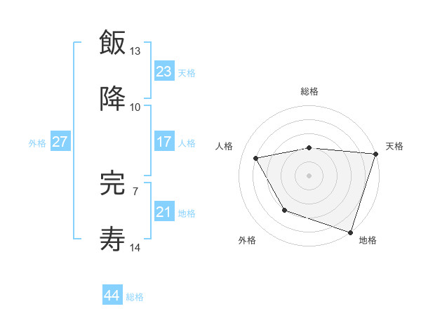飯降 完寿さんを姓名の画数から五運を鑑定
