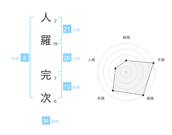人羅 完次さんの総格は34画の2点!