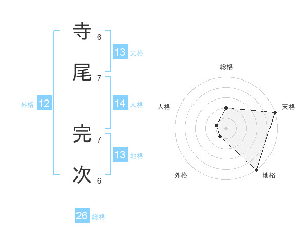 寺尾 完次さんの天格は13画の5点!