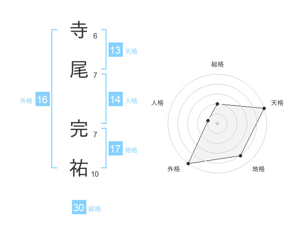 寺尾 完祐さんの天格は13画の5点!