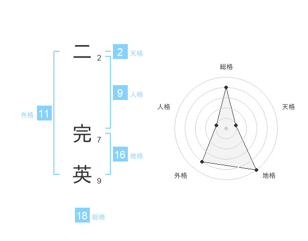 二 完英さんの総格は18画の4点!