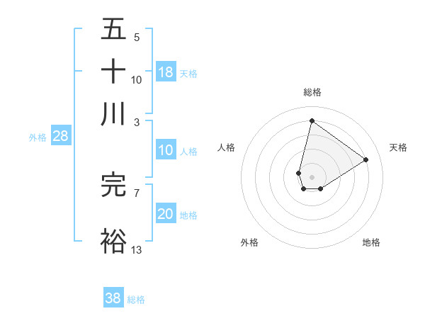 五十川 完裕さんを姓名の画数から五運を鑑定
