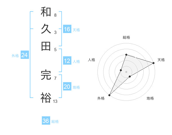 和久田 完裕さんの地格は20画の1点!