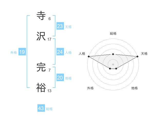 寺沢 完裕さんの天格は23画の5点!